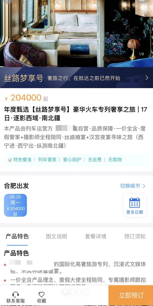 4月23日,上游新闻记者登录12306App检索“旅游专列”发现,上述产品名为“丝路梦享号”,主打高端定制体验,行程覆盖新疆多个旅游目的地。页面介绍显示,列车提供管家服务、特色餐饮及沿线住宿与游览安排,整体为“全包式”产品,由入驻平台的旅游公司自营。
