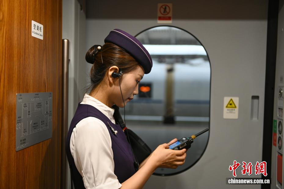 8月27日,临近秋季开学,大量学生乘高铁返校。同学们提拉旅行箱,踏上由中国铁路沈阳局集团有限公司沈阳客运段动车三队担当乘务的沈阳南到北京朝阳G3602次列车,列车长谭莉敏热情周到的服务,助力学生顺利返程。京沈高铁是国家“八纵八横”高铁网京哈京港澳通道的组成部分。开行时速350公里复兴号标杆列车,东北地区主要城市与首都间时空距离进一步压缩,旅客出行更加便利。图为谭莉敏通过手持终端机查看客流。