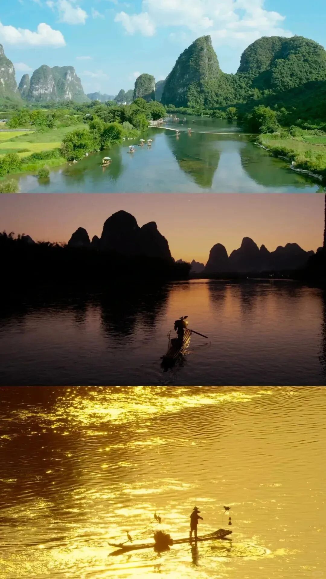 一年之中,一日之内,由于光风云雨不断变化,到漓江的每一个人看到的风景都不尽相同,从空中看就更是变幻莫测,可以说山水之间安放了一个看不完的桂林。