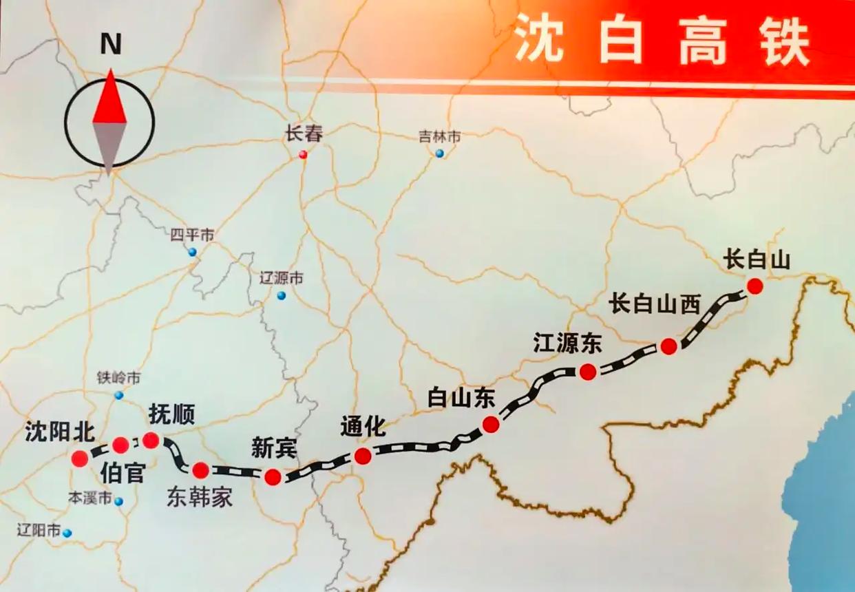 IT之家查询获悉,沈白高铁正线起自沈阳北站,沿线经沈阳市、抚顺市、通化市、白山市等地,终至长白山站,全长约 430 公里,设计时速 350 公里,全线共设沈阳北站、伯官站、抚顺站、东韩家站、新宾站、通化站、白山东站、江源东站、长白山西站、长白山站等 10 座车站。