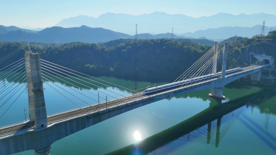 回顾建设历程,这条高铁的每一步都掷地有声:2020年5月全线开工,2024年1月隧道贯通、8月架梁完成,2025年4月铺轨收官,8月静态验收、9月联调联试启动。联调联试期间,各类试验列车累计开行1366列,检测总里程超4.2万公里,综合检测列车最高时速更是达到385公里,用硬核数据彰显工程品质。