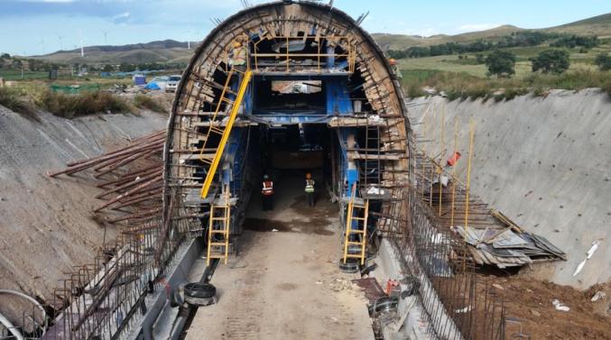 陈家营隧道位于河北省张家口市沽源县白土窑乡陈家营村西南侧,全长929米。该隧道处于坝上——内蒙古高原,地势起伏较大,施工环境复杂。隧道施工过程中面临多重挑战:进口段存在偏压且埋深较浅,地质条件复杂;进出口段均与高压电力线路交叉,协调难度大。同时,张家口坝上地区冬季漫长寒冷,最低气温可达零下30℃,极端低温不仅对施工人员的作业环境构成考验,还会影响混凝土凝固、机械液压系统运行等施工质量与效率,给工程推进带来极大困难。