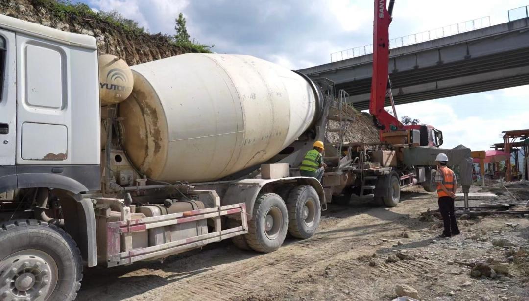 工人禹登涛的身影被灯光拉长,安全帽下是沾满了水泥点的脸。他一只眼微眯着,另一只眼紧盯着浇筑面,手中的振捣棒拿捏着混凝土的流动,这样的俯身每天要重复无数次。