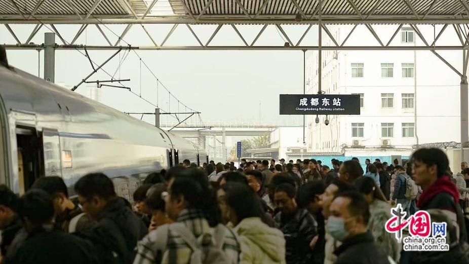 假日期间,成都铁路枢纽三大主力车站客流高位运行。成都东站累计发送旅客131.6万人次、到达128.7万人次,日均运送52.1万人次;成都南站累计发送20.9万人次、到达23.0万人次,日均运送8.8万人次;成都西站累计发送15.6万人次、到达14.7万人次,日均运送6.1万人次。